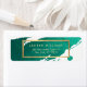 Dark, emerald green paint brushstrokes create an abstract backdrop on these designer address labels. Your name, or business name, and address is displayed in a faux gold box for a modern aesthetic. Art and design © 1201AM Design Studio | www.1201am.com