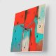 Abstract Expressionist Art Painting Red Turquoise Square Wall Clock