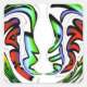 Red, Green, Purple, Yellow: These vibrant colours are used in the swirling lines that form the faces, creating an energetic and lively feel. The application is reminiscent of graffiti or psychedelic art, adding a contemporary touch.