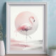 Add a touch of serene beauty to your space with this elegant watercolor flamingo art print. Featuring a graceful pink flamingo standing on one leg, softly painted in delicate shades of blush, coral, and grey, this artwork is set against a muted circular sun backdrop. The minimal composition and gentle brushstrokes evoke a calming, beachy vibe — perfect for coastal, boho, or nature-inspired interiors.