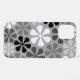 A fun and funky style abstract flower surface pattern design in black, white and greys.