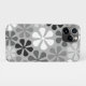 A fun and funky style abstract flower surface pattern design in black, white and greys.
