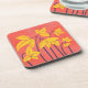 Abstract Flowers Coral Yellow Floral Geometric Art Coaster