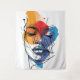 This striking artwork, "Abstract Fluid Line Face Art," is a modern representation of human expression through abstract forms and vibrant colour combinations. The piece portrays a face drawn with fluid, flowing lines that capture both motion and emotion. The lines, seemingly spontaneous and dynamic, curve and intertwine to form the facial features while leaving some elements open to interpretation. The deliberate use of abstract shapes and splashes of colour creates a unique visual experience where the orange, red, and deep blues offer a balance between warmth and coolness, symbolizing a range of emotions.