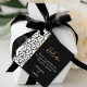 The Abstract Foliage Pattern Wedding Favour Tags are part of a wedding invitation set, the Chic Leaf Pattern Border Wedding Invitation collection. It is designed to complement either a black and white wedding theme or a formal black-tie wedding theme. To customize the design to meet your specific requirements, simply enter your text in the relevant fields and make the necessary changes. To fully customize the colours, follow the link provided. For further information about wedding themes and planning ideas, please visit our website at www.KBMD3signs.com. Should you require a custom design, please contact us at info@KBMD3signs.com.