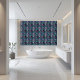This tile features a mesmerizing abstract geode pattern, reminiscent of natural agate slices. The design showcases a blend of deep blues, purples, and teals, accented with shimmering gold and crystal-like details. Perfect for adding a touch of natural elegance and modern artistry to any space.