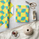 An originally designed abstract geometric pattern in lemon yellow, turquoise and orange.