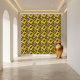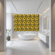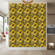 This Geometric abstract pattern ceramic tile featuring a striking contrast of black and yellow.