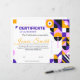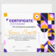 A bold abstract geometric certificate of achievement featuring vibrant purple, yellow, and modern artistic shapes. This contemporary award certificate design is perfect for corporate recognition, creative events, school achievements, and employee appreciation. The stylish layout combines artistic geometry with a professional structure, making it ideal for modern companies, organizations, and educational institutions seeking a unique and eye-catching award certificate.