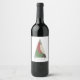 Hand painted abstract artwork perfectly fills a clean geometric Christmas Tree on this modern art wine label.