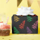 Brighten your holiday wrapping with this vibrant, modern wrapping paper flat sheet set featuring an abstract geometric Christmas tree pattern. The design showcases colourful, line art Christmas trees—bold, contemporary, and playful against a seamless blaack background