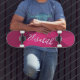 Abstract Geometric design featuring various shades of magenta / fuchsia and your name Skateboard