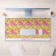 This eye-catching desk mat features an abstract geometric pattern made of magenta pink and chartreuse green square tiles. The focus of this design is the unique watercolor effect that is created by the colours which are blended together. To provide a touch of personalization, there is a white band at the bottom of the mat with your name printed in the centre. This mat will be the ideal addition to any desk in need of a splash of colour and a unique look.