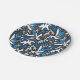 abstract, geometric, pattern, black and blue throw paper plate