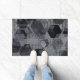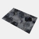 Abstract geometric textured pattern, black and grey background. Black, grey geometric shapes, honeycombs on a light grey striped background.