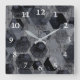 Abstract geometric textured pattern, black and grey background. Black, grey geometric shapes, honeycombs on a light grey striped background.