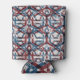 Abstract geometric pattern in red, blue, black, and white.