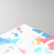 An abstract design of layered geometric shapes on a messy background.