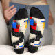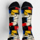 Step into contemporary style with these abstract geometric socks, featuring bold colour blocks in red, blue, yellow, and black. Enhanced by sleek black grid lines and dynamic shapes on a cream background, this design merges structure and creativity for a standout look. Perfect for art lovers and trendsetters, these socks are a unique and stylish accessory for any occasion.