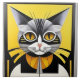 Stylized artistic depiction of a cat's head created with bold geometric shapes and vibrant colours, conveying modern and creative design vibes.