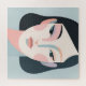 Capture quiet confidence and modern grace with this elegant abstract female portrait! Bold geometric shapes define her striking features sleek black hair, soft peach blush circles, delicate blue and lavender eye accents, and warm coral lips all harmoniously layered against a soothing pale mint-blue background.
