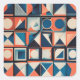 A vibrant explosion of abstract geometric shapes in neon colors, intersecting and overlapping. The shapes include triangles, circles, and squares with a 3D effect, creating a visually striking, dynamic composition