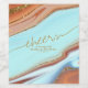 This wedding design set, with it's abstract pattern of flowing ripples and veins of glittering gold, brings to mind eye-catching rock formations and Southwestern landscapes. A colourful palette in shades from rust, and terra cotta through sky blue adds to the appeal. The wine label shown here on a sky blue background has all the above with template to easily add a message, names and wedding date. Search ID903 to see other colour choices and coordinating pieces for this unique wedding collection.
