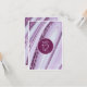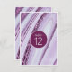 This wedding design set, with it's abstract pattern of flowing ripples and veins of glittering plum, brings to mind eye-catching rock formations and sparkling gems. The striking colour palette in shades from lilac and lavender to soft periwinkle adds to the appeal. The coordinating table number card shown here has all the above with a dark plum label to hold your table numbers. Easily add your names, numbers and wedding date using the provided template. Search ID903 to see other colour choices and coordinating pieces for this unique wedding collection.