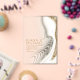 This wedding design set, with it's abstract pattern of flowing ripples and veins of glittering gold, brings to mind eye-catching rock formations and Southwestern landscapes. The neutral colour palette in shades from champagne to soapstone adds to the appeal. The acrylic invitation shown here has all the above on a transparent background. Easily add your event details using the provided template. Search ID903 to see other colour choices and coordinating pieces for this unique wedding collection.