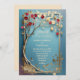 This wedding card features a striking design with a golden frame intertwined with a beautifully crafted tree branch adorned with golden leaves and vibrant red apples. The background transitions from light blue at the top to a slightly darker blue at the bottom, creating a tranquil and elegant setting. The art style merges modern minimalism with Art Nouveau influences, characterized by its graceful curves and organic forms. The detailed branch and leaf motifs, combined with the bold red apples, evoke a sense of natural beauty and timeless romance, making this card a perfect choice for a wedding. Personalize the text regarding the names and details of the wedding. You can download the card to your mobile device or computer. I designed the card with the help of generative ai.