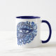 An illustrations of an abstract Greek evil eye and Greek key within a face. Which is the Greek and Turkish symbol of protection.