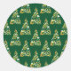 Abstract green and gold Christmas tree pattern Classic Round Sticker