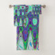 Abstract Green and Purple Wavy Mosaic Retro Bath Towel Set