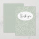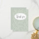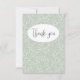 Sage green watercolor abstract leaf pattern and coordinating background with “Thank you” in modern typography.