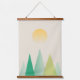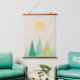 Minimalist geometric green mountains and yellow sunset for this semi abstract modern design.