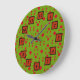 Abstract Green Red Pattern with Bits and Squares Large Clock