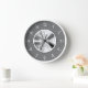 This round wall clock features an abstract monochrome ombre fractal art on a grey background with white numerals.