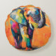 Abstract Happy Rainbow Elephant Round Pillow