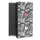 Fun iPad Mini folio style case, done in a black and white abstract doodle art colouring page look, with a pink heart. Personalize the pink name, for yourself or as a great gift idea for her.