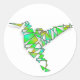 Abstract art round stickers. A hummingbird formed by geometric shapes.