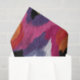 Decoupage tissue paper featuring a seamless pattern of organic shapes in an ikat style. The prominent colours are pink, purple, black, white, orange and gold yellow.