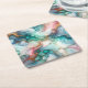 Abstract in Pink, Teal, Blue, and Gold Square Paper Coaster