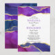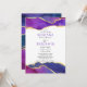 Abstract smoke ink in fuchsia pink, purple, and gold colours wedding invitation with purple font on first names.