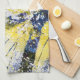 Abstract painting, a new spin on a French country floral, in blue and yellow. Perfect on this kitchen towel to add a pop of colour for your kitchen.