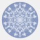 Abstract Lacy Fractal Snowflake on Blue Background Classic Round Sticker