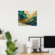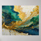 Watercolor Abstract Landscape Painting. Blue Green Gold Paint Accents The aspect ratio is 5:4. It was designed to be printed as 20X16