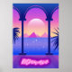 A set of abstract landscape poster in retro futurism style Retro wave and cyberpunk Neon colours, Greek columns and a statue
