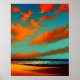 Abstract landscape with sunset teal orange simple poster