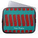 This laptop computer sleeve is decorated with an abstract pattern of repeating brick coloured shapes on a turquoise background, and personalized with name or other text. It's easy to modify or delete example text. What a nice southwest style case to protect a new laptop! Great gift for graduation, Mother's Day, Father's Day, Christmas... Available in 10", 13", or 15" sizes. All Rights Reserved © 2014 Alan & Marcia Socolik.