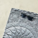 This monochrome beach towel features an abstract spiral fractal design in light grey and black.